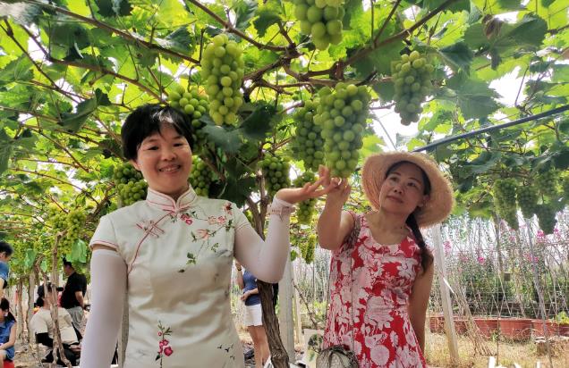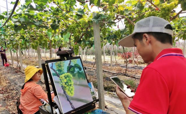 汉光超顺现在拥连片500亩的果树栽培大棚、水肥一体化设备,并完成农旅园办公大楼、农产品展示中心、农产品安全检测中心建设。现已经成为集大型果蔬种植、观光旅游、休闲度假、亲子体验、科普教育等吃住旅一体的现代农旅园区。记者在现场看到,不少画家在葡萄长廊下现场写生、绘画葡萄,充分展现了葡萄文化节的魅力。
