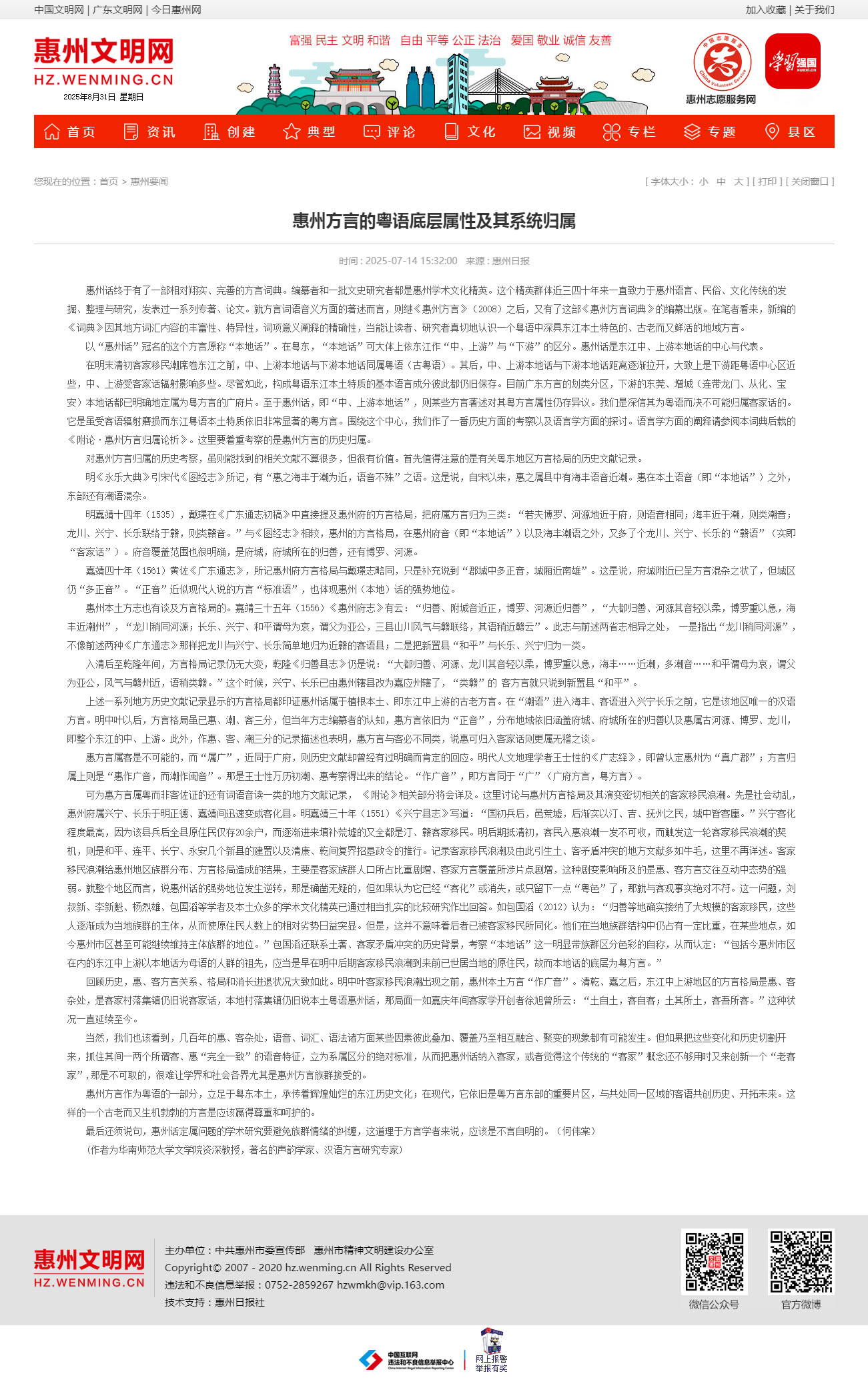 最后还须说句,惠州话定属问题的学术研究要避免族群情绪的纠缠,这道理于方言学者来说,应该是不言自明的。(何伟棠)