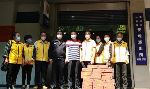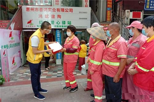 4月19日早上,200箱山泉柑已到红棉爱心驿站,红棉慈善会副会长李小艺在驿站将“山泉柑”免费派送给辛苦在一线的志愿者们、环卫工人们。后又带领红棉志愿者们分别给惠州市第一位“中国好人”古槐基、“中国好人”陈小利、田妹、保卫人民生命财产安全的公安民警们及三栋敬老院的老人们和社区的贫困户。