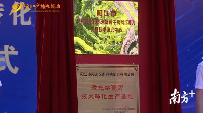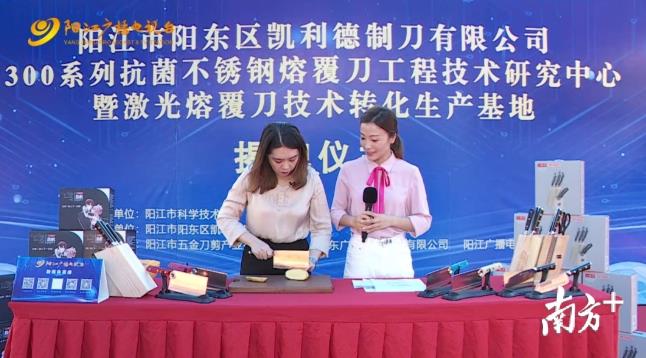 7月6日上午,由阳江市科学技术局主办,阳东区凯利德制刀有限公司承办的300系列抗菌不锈钢熔覆刀工程技术研究中心暨激光熔覆刀技术转化生产基地揭牌仪式在阳东凯利德制刀有限公司举行。阳江广播电视台通过线上平台现场直播了揭牌仪式,现场展示创新刀具产品304抗菌不锈钢熔覆刀新品。